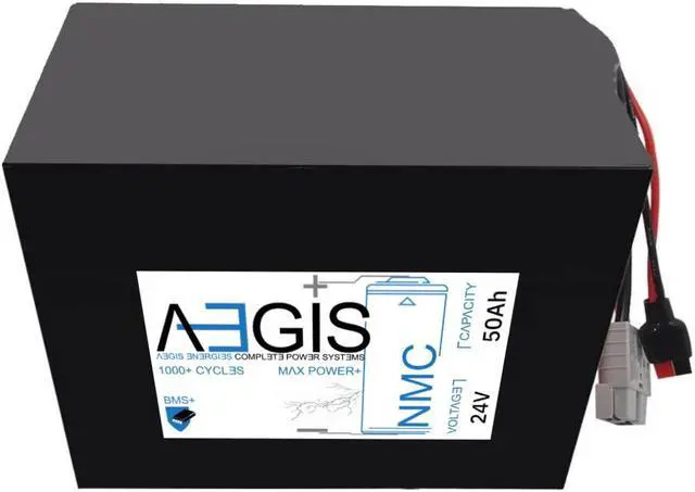 The Aegis Battery 24V 50Ah Li-Ion Battery is a state of the art rechargeable battery pack made with 18650 Li-Ion cylindrical cells packed with black PVC shrink wrap. It is perfect for bike lighting, RC toys, robots, laptops, and DVD external batteries. The battery comes with pre-assembled integrated Anderson Power Pole connectors allowing for easy compatibility. The Aegis battery has a built-in battery management system (BMS) that keeps the battery running at peak performance and protects the cells for thousands of cycles, including over-charge, over-discharge, over-current, and short-circuit protection.