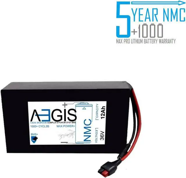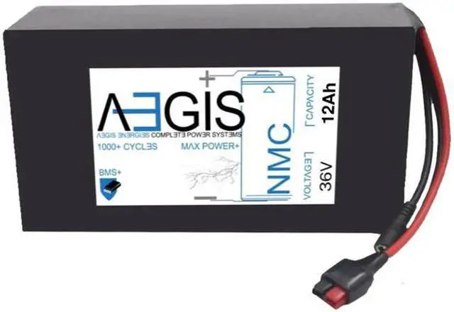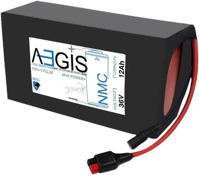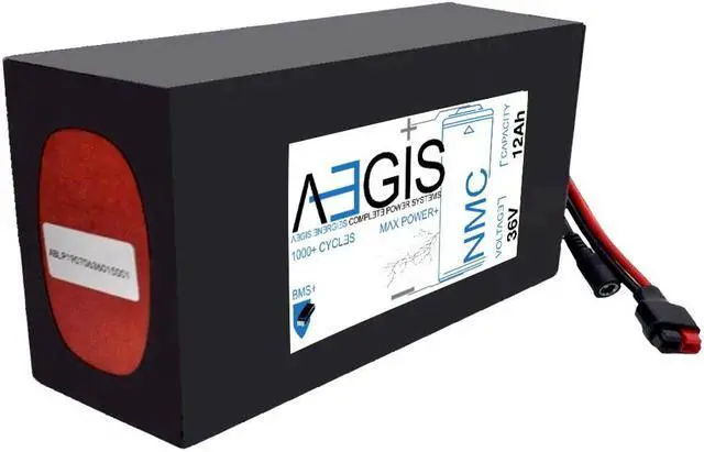 The Aegis 36V 12Ah Li-ion Battery is a state of the art rechargeable battery pack made with 18650 cells designed for 36V devices. It is perfect for e-scooters, e-bikes, solar applications, robots, and other applications that require a higher-energy density battery. The battery comes with integrated Anderson Powerpole connectors making it a perfect drop in solution for your applications. The Aegis battery has a built in battery management system (BMS) that keeps the battery running at peak performance and protects the cells for thousands of cycles, including over-charge, over-discharge, over-current, and short-circuit protection.