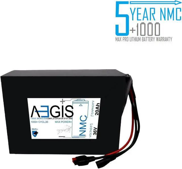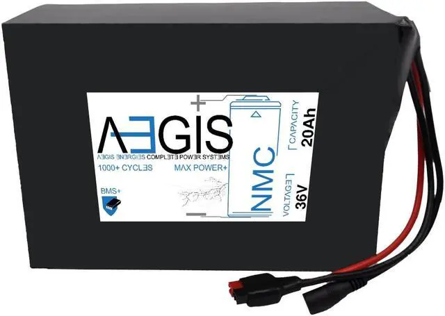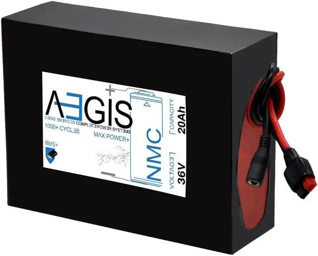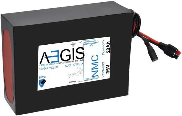 The Aegis 36V 20Ah Li-ion Battery is a state of the art rechargeable battery pack made with 18650 cells designed for 36V devices. It is perfect for e-scooters, e-bikes, solar applications, robots, and other applications that require a higher-energy density battery. The battery comes with integrated Anderson Powerpole connectors making it a perfect drop in solution for your applications. The Aegis battery has a built in battery management system (BMS) that keeps the battery running at peak performance and protects the cells for thousands of cycles, including over-charge, over-discharge, over-current, and short-circuit protection.