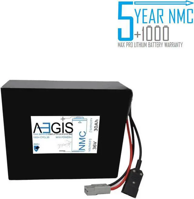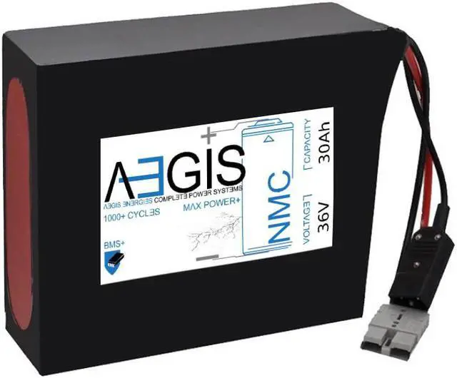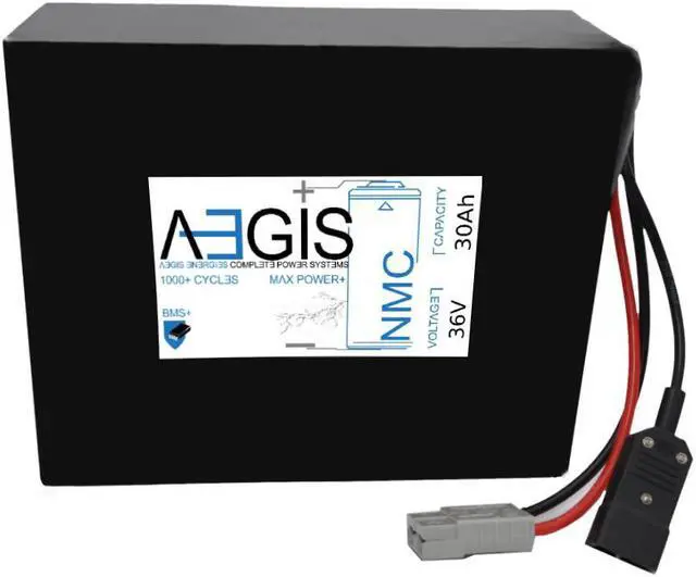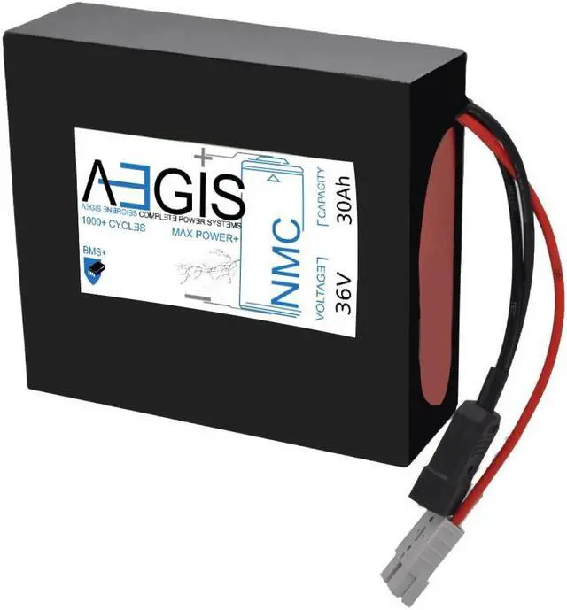 The Aegis 36V 30Ah Li-ion Battery is a state of the art rechargeable battery pack made with 18650 cells designed for 36V devices. It is perfect for e-scooters, e-bikes, solar applications, robots, and other applications that require a higher-energy density battery. The battery comes with an integrated SMH connector making it a perfect drop in solution for your applications. The Aegis battery has a built in battery management system (BMS) that keeps the battery running at peak performance and protects the cells for thousands of cycles, including over-charge, over-discharge, over-current, and short-circuit protection.