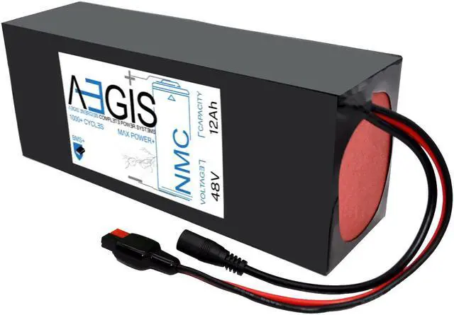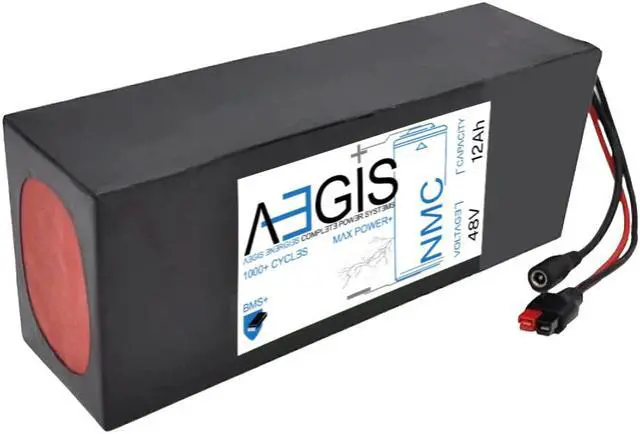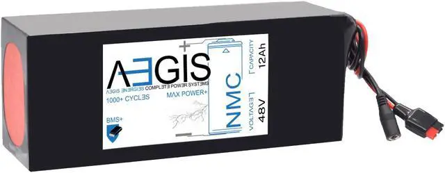 The Aegis 48V 12Ah Li-ion Battery is a state of the art rechargeable battery pack made with 18650 cells designed for 48V devices. It is perfect for e-scooters, e-bikes, solar applications, robots, and other applications that require a higher-energy density battery. The battery comes with integrated Anderson Power Pole connectors making it a perfect drop in solution for your applications. The Aegis battery has a built in battery management system (BMS) that keeps the battery running at peak performance and protects the cells for thousands of cycles, including over-charge, over-discharge, over-current, and short-circuit protection.