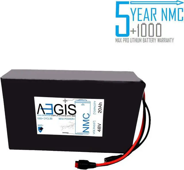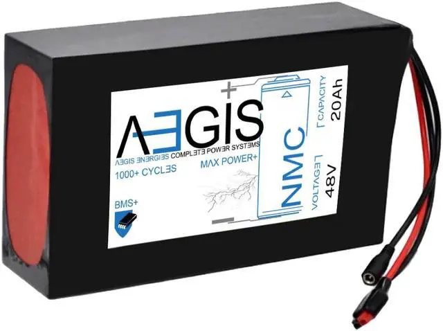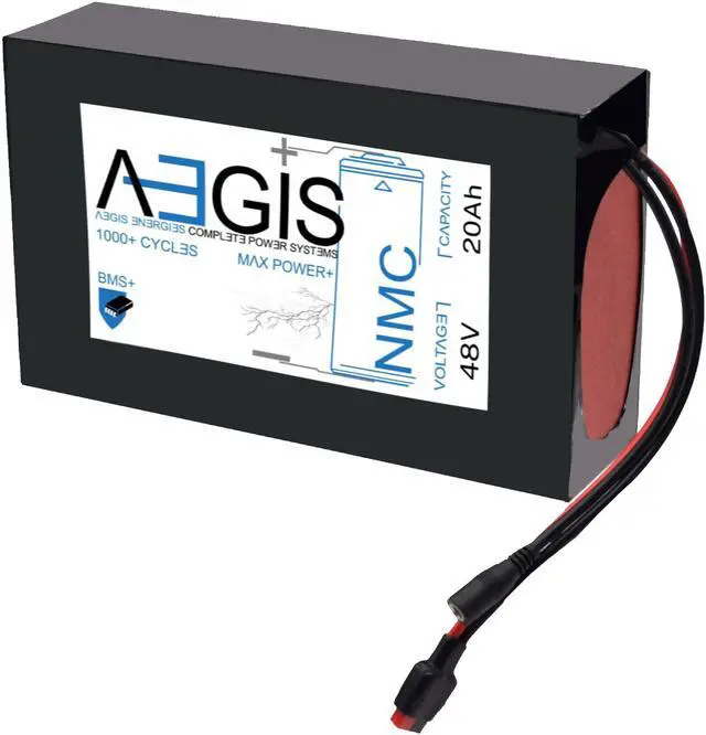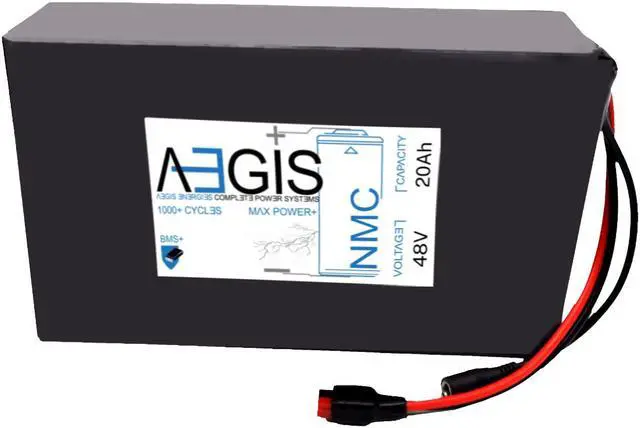 The Aegis 48V 20Ah Li-ion Battery is a state of the art rechargeable battery pack made with 18650 cells designed for 48V devices. It is perfect for e-scooters, e-bikes, solar applications, robots, and other applications that require a higher-energy density battery. The battery comes with integrated Anderson Power Pole connectors making it a perfect drop in solution for your applications. The Aegis battery has a built in battery management system (BMS) that keeps the battery running at peak performance and protects the cells for thousands of cycles, including over-charge, over-discharge, over-current, and short-circuit protection.