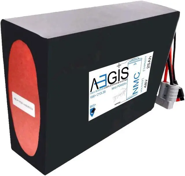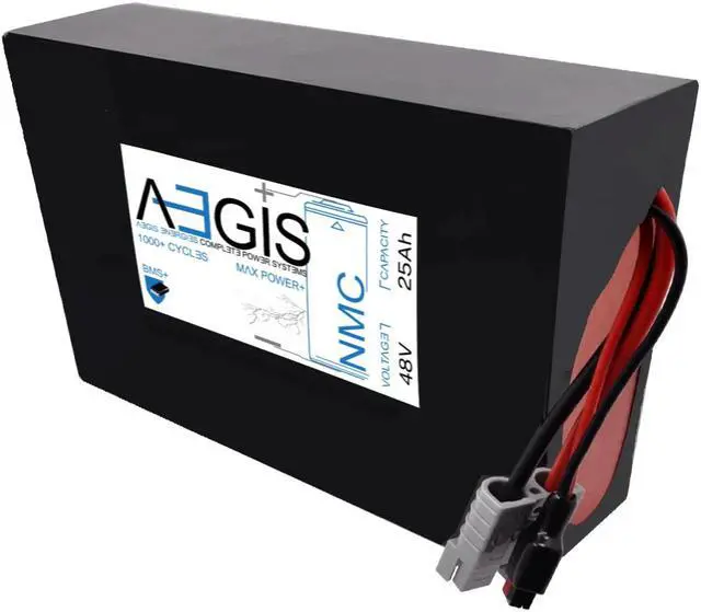 The Aegis 48V 25 Ah Li-ion Battery is a state of the art rechargeable battery pack made with 18650 cells designed for 48V devices. It is perfect for e-scooters, e-bikes, solar applications, robots, and other applications that require a higher-energy density battery. The battery comes with integrated Anderson Power Pole connectors making it a perfect drop in solution for your applications. The Aegis battery has a built in battery management system (BMS) that keeps the battery running at peak performance and protects the cells for thousands of cycles, including over-charge, over-discharge, over-current, and short-circuit protection.