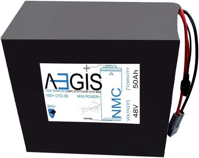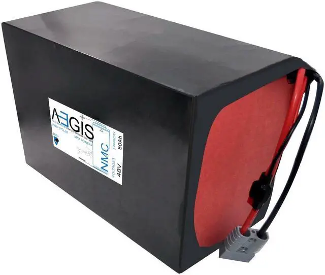 The Aegis 48V 50 Ah Li-ion Battery is a state of the art rechargeable battery pack made with 18650 cells designed for 48V devices. It is perfect for e-scooters, e-bikes, solar applications, robots, and other applications that require a higher-energy density battery. The battery comes with integrated Anderson Power Pole connectors making it a perfect drop in solution for your applications. The Aegis battery has a built in battery management system (BMS) that keeps the battery running at peak performance and protects the cells for thousands of cycles, including over-charge, over-discharge, over-current, and short-circuit protection.