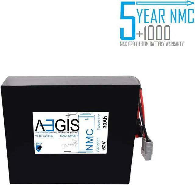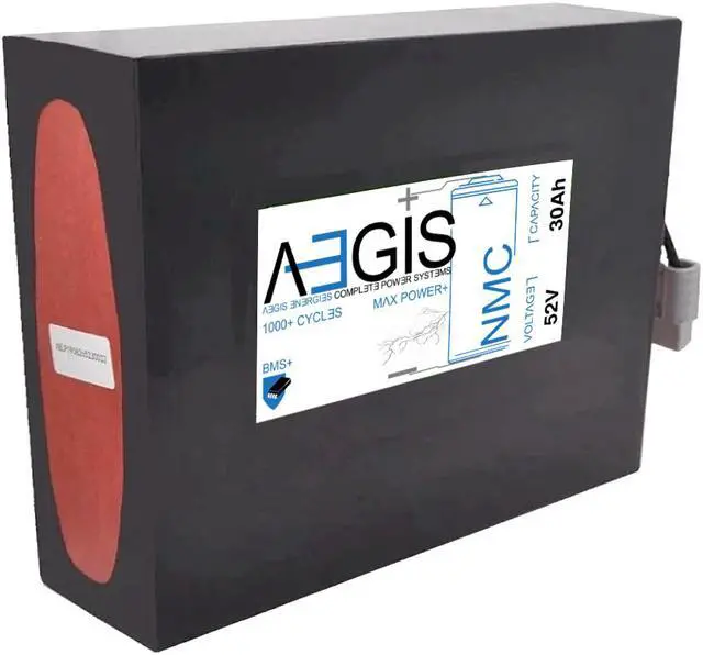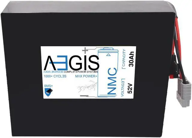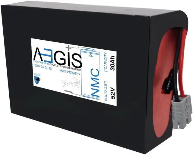 The Aegis 52V 30 Ah Li-ion Battery is a state of the art rechargeable battery pack made with 18650 cells designed for 52V devices. It is perfect for e-scooters, e-bikes, solar applications, robots, and other applications that require a higher-energy density battery. The battery comes with integrated Anderson Power Pole connectors making it a perfect drop in solution for your applications. The Aegis battery has a built in battery management system (BMS) that keeps the battery running at peak performance and protects the cells for thousands of cycles, including over-charge, over-discharge, over-current, and short-circuit protection.
