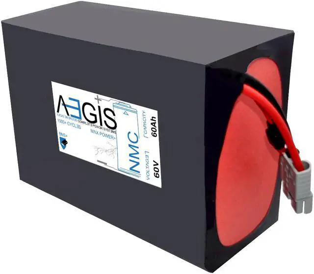 The Aegis 60V 60Ah Li-ion Battery, ABL060060P, is a state of the art rechargeable battery pack made with 18650 cells designed for 60V devices. It is perfect for e-scooters, e-bikes, solar applications, robots, and other applications that require a higher-energy density battery. The battery comes with integrated Anderson Power Pole connectors making it a perfect drop in solution for your applications. The Aegis battery has a built in battery management system (BMS) that keeps the battery running at peak performance and protects the cells for thousands of cycles, including over-charge, over-discharge, over-current, and short-circuit protection.