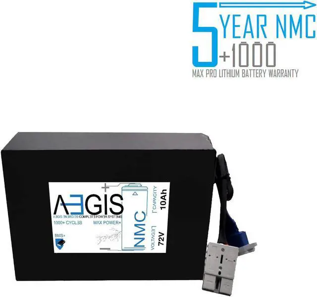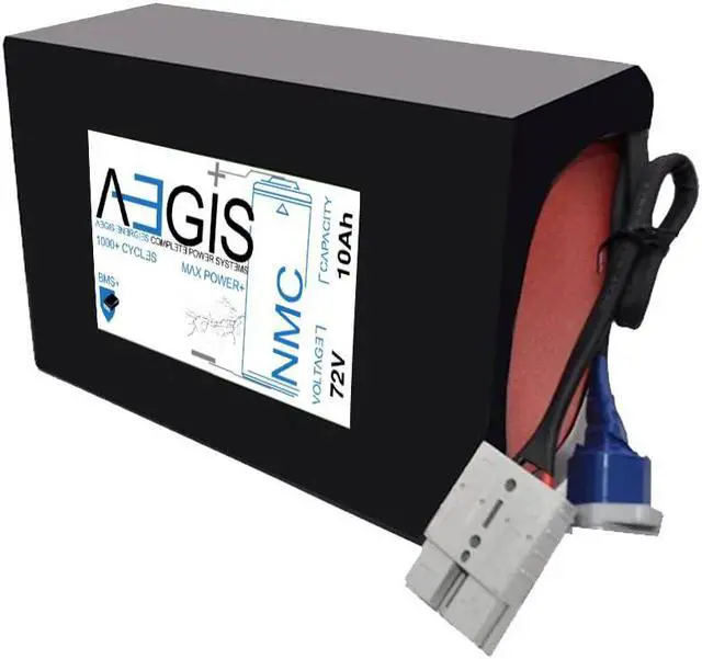 The Aegis 72V 10 Ah Li-ion Battery is a state of the art rechargeable battery pack made with 18650 cells designed for 72V devices. It is perfect for e-scooters, e-bikes, solar applications, robots, and other applications that require a higher-energy density battery. The battery comes with integrated Anderson Power Pole connectors making it a perfect drop in solution for your applications. The Aegis battery has a built in battery management system (BMS) that keeps the battery running at peak performance and protects the cells for thousands of cycles, including over-charge, over-discharge, over-current, and short-circuit protection.