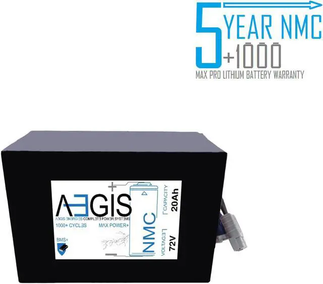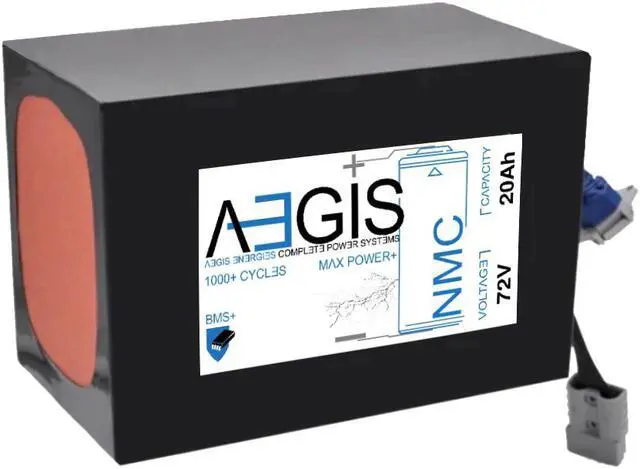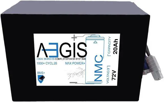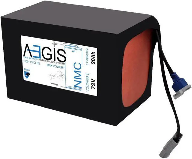 The Aegis 72V 20Ah Li-ion Battery is a state of the art rechargeable battery pack made with 18650 cells designed for 72V devices. It is perfect for e-scooters, e-bikes, solar applications, robots, and other applications that require a higher-energy density battery. The battery comes with an integrated Anderson Power Pole SMH connector making it a perfect drop in solution for your applications. The Aegis battery has a built in battery management system (BMS) that keeps the battery running at peak performance and protects the cells for thousands of cycles, including over-charge, over-discharge, over-current, and short-circuit protection.