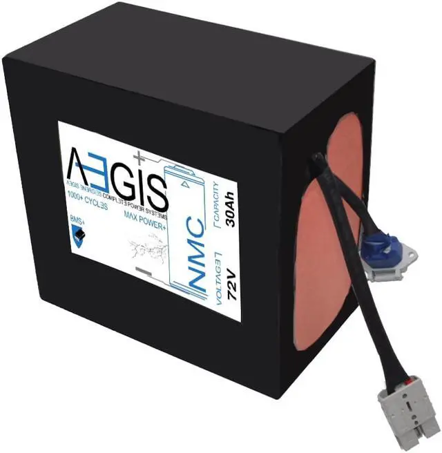 The Aegis 72V 30Ah Li-ion Battery is a state of the art rechargeable battery pack made with 18650 cells designed for 72V devices. It is perfect for e-scooters, e-bikes, solar applications, robots, and other applications that require a higher-energy density battery. The battery comes with an integrated Anderson Power Pole SMH connector making it a perfect drop in solution for your applications. The Aegis battery has a built in battery management system (BMS) that keeps the battery running at peak performance and protects the cells for thousands of cycles, including over-charge, over-discharge, over-current, and short-circuit protection.