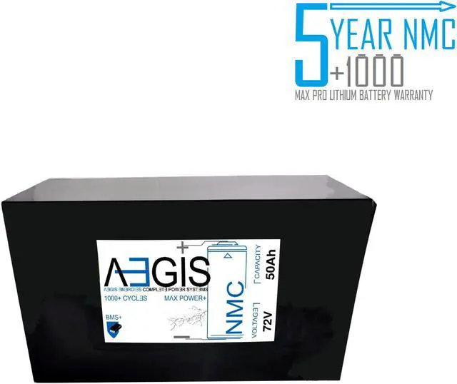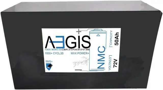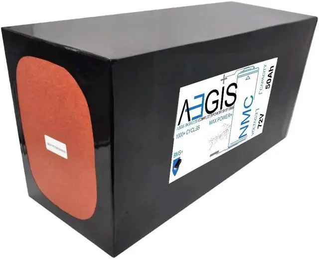 Aegis Battery 72V 50Ah Li-Ion Battery + Charger is a state of the art rechargeable battery pack made with 18650 Li-Ion cylindrical cells. For ebikes, scooters, robots, solar & high energy products.