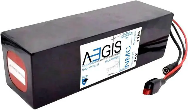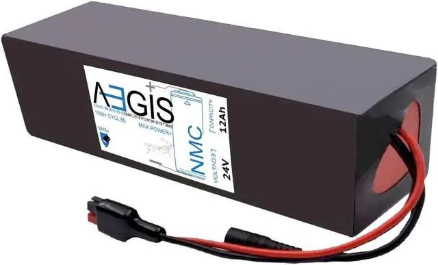 The Aegis Battery 24V 12Ah Long Li-Ion Battery is a state of the art rechargeable battery pack made with 18650 Li-Ion cylindrical cells packed with black PVC shrink wrap. It is perfect for bike lighting, RC toys, robots, laptops, and DVD external batteries. The battery comes with pre-assembled integrated Anderson Power Pole connectors allowing for easy compatibility. The Aegis battery has a built-in battery management system (BMS) that keeps the battery running at peak performance and protects the cells for thousands of cycles, including over-charge, over-discharge, over-current, and short-circuit protection.