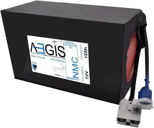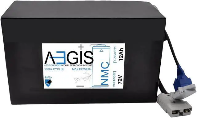 Aegis 72V 12 Ah Li-ion Battery is a state of the art rechargeable battery pack made with 18650 cells designed for 72V devices. It is perfect for e-scooters, e-bikes, solar applications, robots, and other applications that require a higher-energy density battery. The battery comes with an integrated Anderson Power Pole SMH connector making it a perfect drop in solution for your applications. The Aegis battery has a built in battery management system (BMS) that keeps the battery running at peak performance and protects the cells for thousands of cycles, including over-charge, over-discharge, over-current, and short-circuit protection.