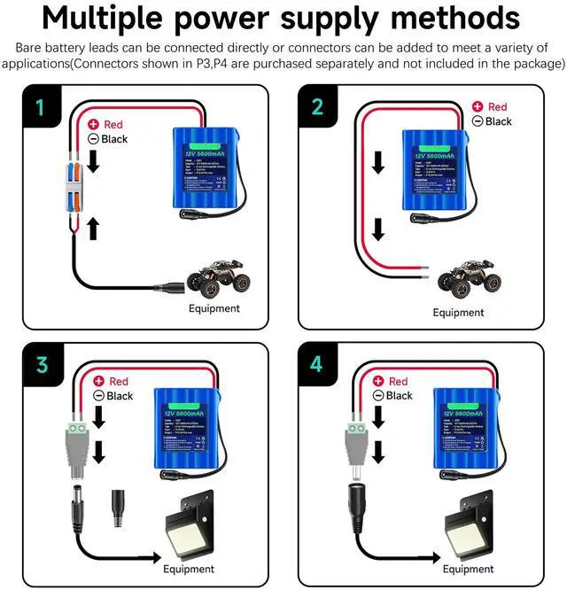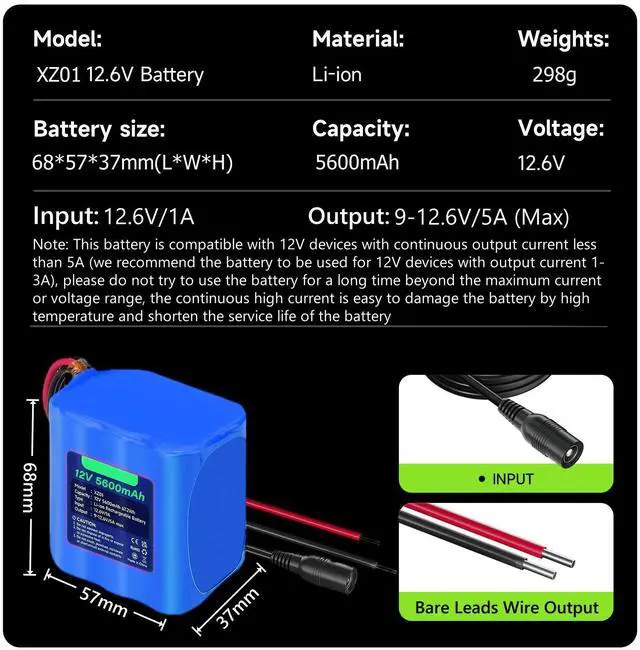 3. A high-quality battery charger kit with overcharge, short circuit, high temperature, and overvoltage protection functions. Discharge protection, if the device does not charge (no output), the power will automatically turn off after 10 seconds.