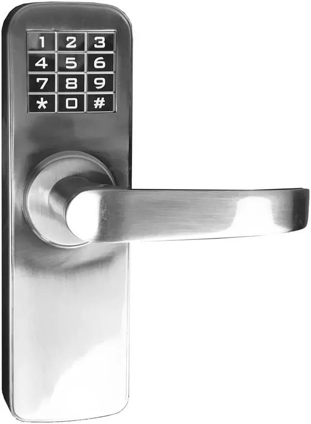 This password/combination door lock offers great convenience of reliable keyless access by code. User can setup up to 50 different password/ codes for access, each code can be set from 1 to 13 digits. If needed, user can still use the backup keys included in the package to open the lock. Ideal for commercial storage rooms, utility closets, garages, etc. The door handle functions as a deadlocking spring latch, meaning it's always locked, and after the door has been opened, it immediately defaults back to a locked position or you can still set it to always unlocked mode.