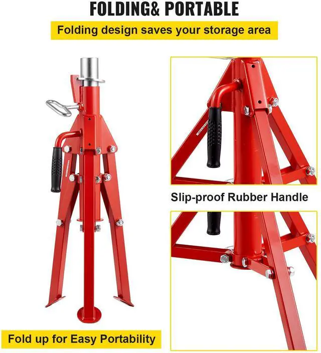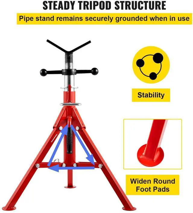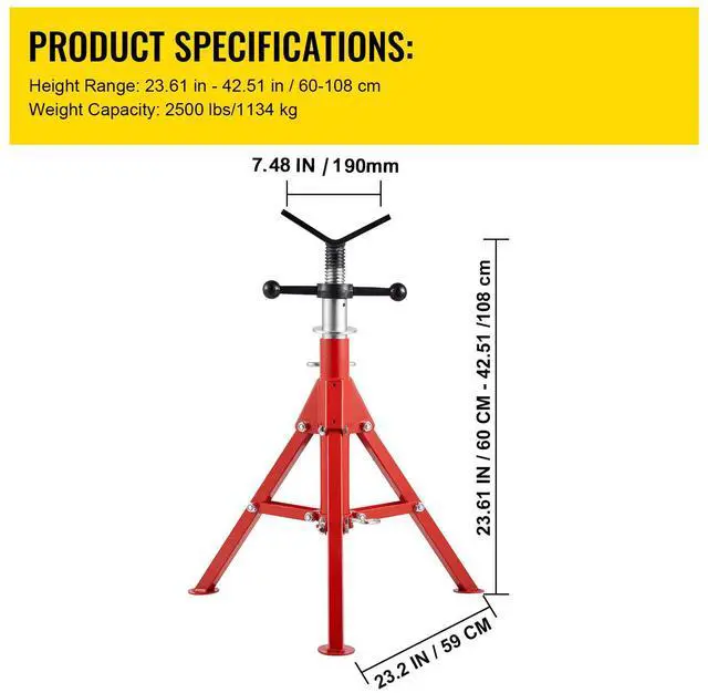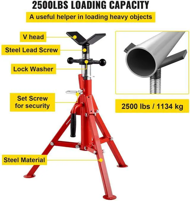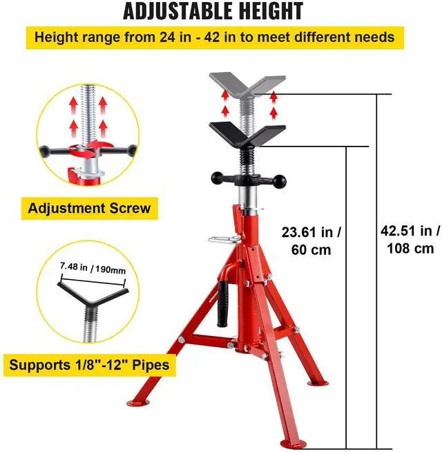 V Head Pipe Stand 1/8\"-12\" Capacity, Adjustable Height 24\"-42\", Pipe Jack Stands 2500 lb. Load Capacity, Portable Folding Pipe Stands, Carbon Steel Body More Durable