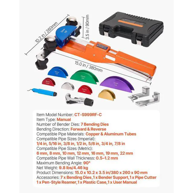 Compatible Pipe Sizes (Imperial): 1/4 in, 5/16 in, 3/8 in, 1/2 in, 5/8 in, 3/4 in, 7/8 in