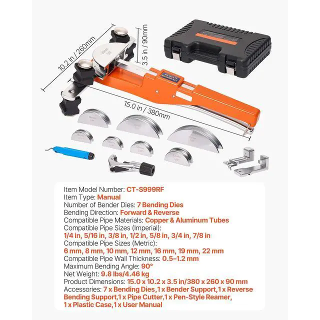 Compatible Pipe Sizes (Imperial): 1/4 in, 5/16 in, 3/8 in, 1/2 in, 5/8 in, 3/4 in, 7/8 in