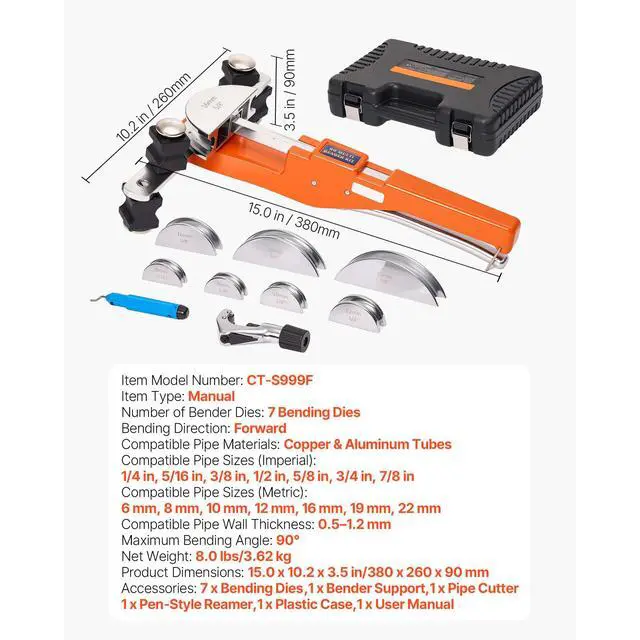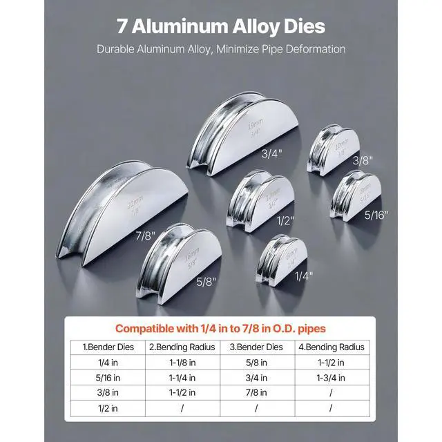 Compatible Pipe Sizes (Imperial): 1/4 in, 5/16 in, 3/8 in, 1/2 in, 5/8 in, 3/4 in, 7/8 in