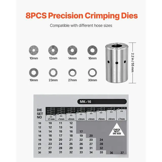 Hose Crimping Range: 0.24 - 1.1 inch / 6 - 28 mm