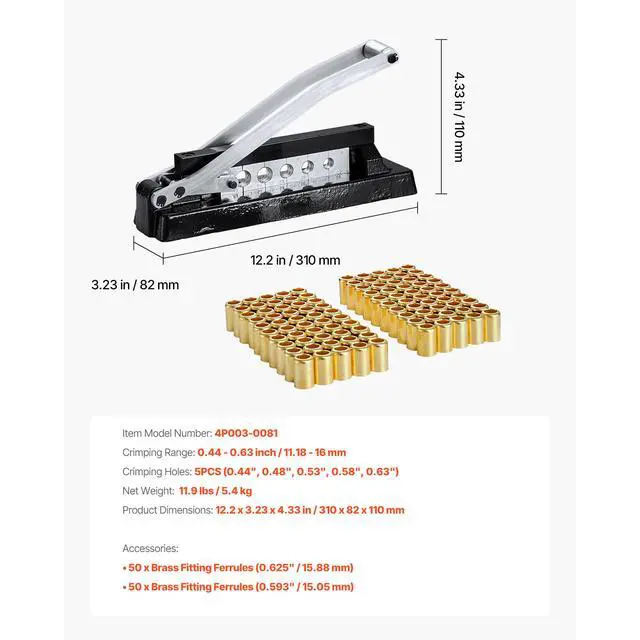 Crimping Holes: 5PCS ( 0.44", 0.48", 0.53", 0.58", 0.63" )
