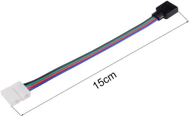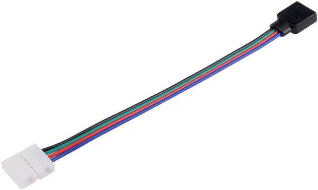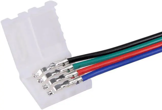 Solderless 4 contact flexible LED strip light connector with pigtail, Clamp clamp connection, used for connecting RGB 3528/5050 flexible light strips and strip segments to LED RGB controller. This LED strip light connector makes the connection easy and quick without soldering, save much more time especially when you make large LED strip project.