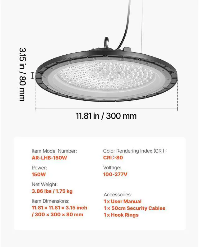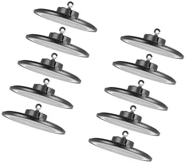 10 Pack LED High Bay Lights, 6000K 150W 21000LM Super Bright UFO LED Warehouse Shop Lights, IP65 Waterproof, 100-277V Wide Voltage for Warehouse Workshop Factory Gym Garage Barn, Black