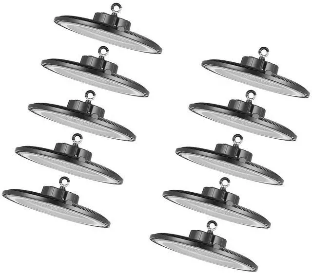 10 Pack LED High Bay Lights, 5000K 200W 30000LM Super Bright UFO LED Warehouse Shop Lights, IP65 Waterproof, 100-277V Wide Voltage for Warehouse Workshop Factory Gym Garage Barn, Black