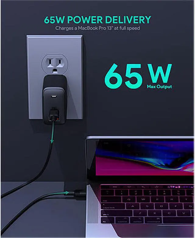 - Enough power (65W) to charge a MacBook Pro or similar laptop.