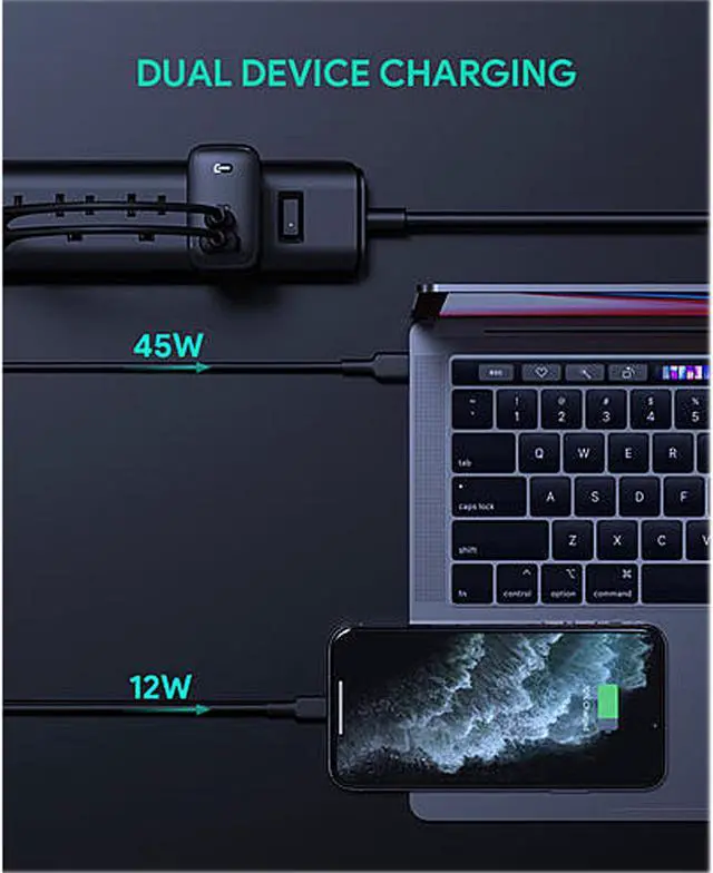- When charging two devices, the ports output 45W and 12W respectively.