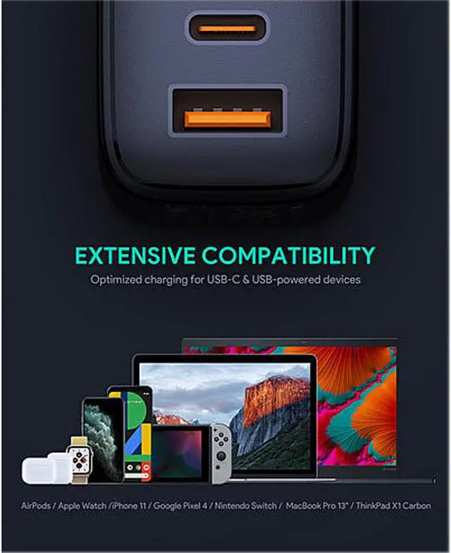- Advanced GaN technology makes this PD laptop charger the same size as a regular phone charger.