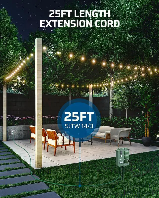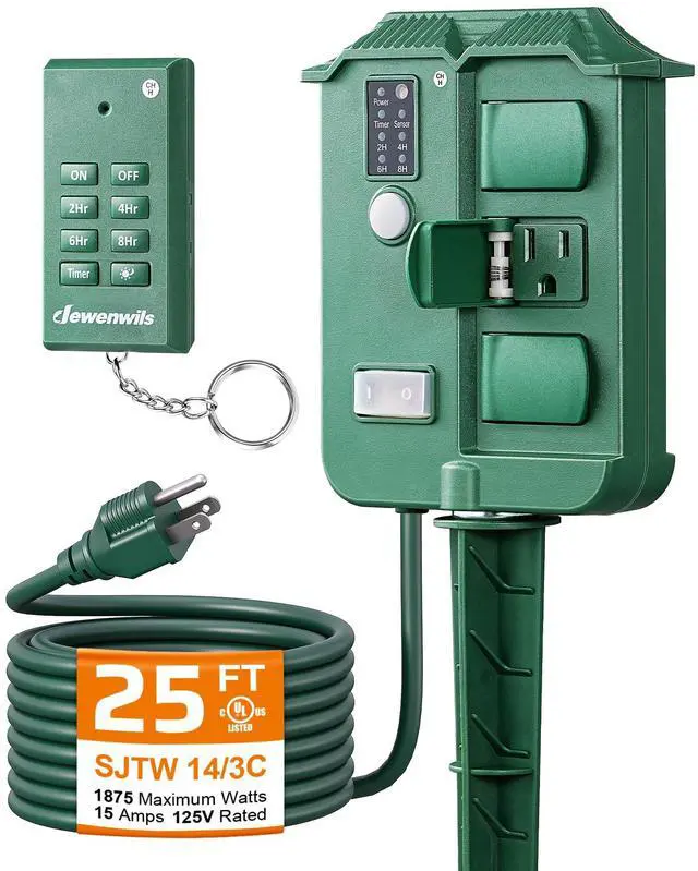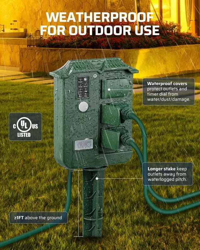 DEWENWILS Outdoor Power Strip Timer, Yard Stake Timer for Outdoor Lights