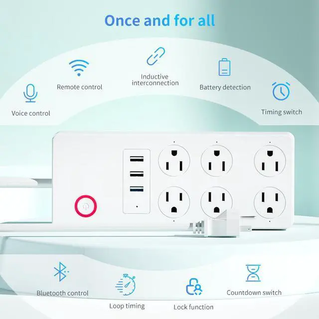 Power-off memory function, the power-plug will remember the on/off statebefore the power-off after the power is restored suddenly when the power strip isconnected to the network, and there is no need to manually switch it again.