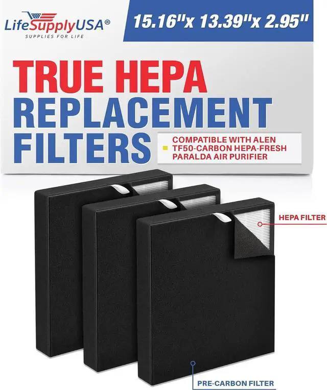 Replacement HEPA fits Alen FF50 HEPA-Pure Filter fits BreatheSmart FIT50 Air Purifier FIT 50. By LifeSupplyUSA, exclusively for sale by LifeSupplyUSA. This is not an OEM product and is not covered under any manufacturer's warranty. Any brand names or logos are the registered trademarks of their respective owners. Any use of any brand name or model designation for this product is made solely for purposes of demonstrating compatibility.