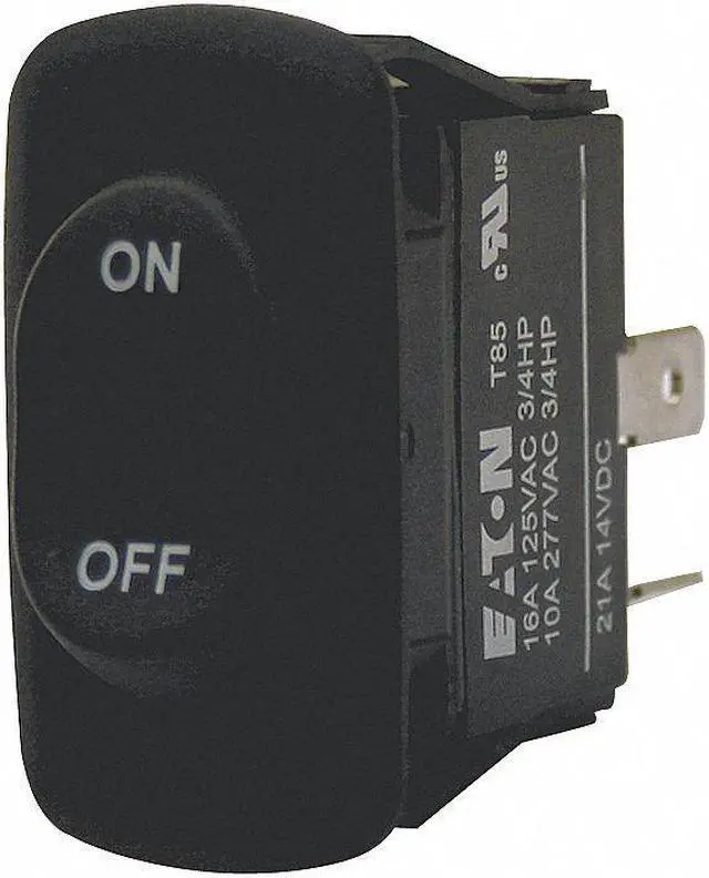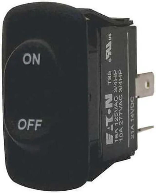 Rocker Switch, Contact Form SPST, Number of Connections 2, Switch Function Off/On, Terminals 0.250 in Quick Connect Tab, Mounting Hole 0.830 in x 1.460 in, AC Contact Rating 10 A @ 277 V, 16 A @ 125 V, HP 3/4 hp, Standards cRUus, RoHS, UL E2702, IP Rating IP56, Special Features Non-Illuminated. This item has been restricted from sale in the following state (s): []
