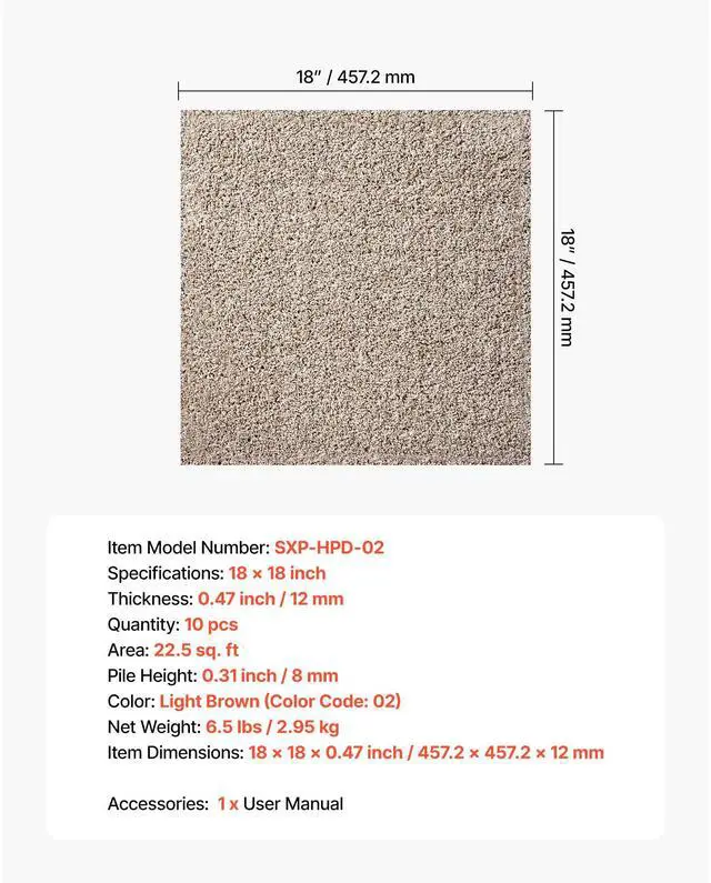 Pile Height: 0.31 inch / 8 mm