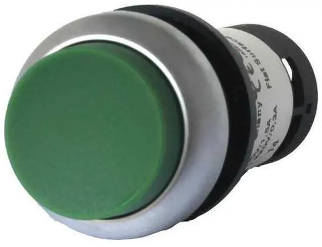 Non-Illuminated Push Button, 22 mm, Momentary Action, Extended Button Type of Operator, Head Material Plastic, Contact Form 1NO/1NC, Bezel Silver Nylon, Color Green, Contact Rating 1.5A @ 230V AC, 3A @ 24V DC, NEMA Contact Rating Designation AC-15, DC-13, Number of Operators 1, NEMA Rating 1, 12, 13, 3, 4X, IP Rating 67, 69K, Legend No Legend, Standards CCC, CE, CSA, IEC 60947, Lloyd's Register, RoHS, UL, VDE 0660, Terminal Connection Pressure Plate, Material Plastic.