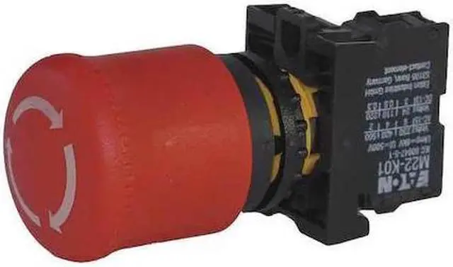 Emergency Stop Push Button, 22 mm, Maintained Action, 45mm Mushroom Head Type of Operator, Head Material Plastic, Contact Form 1NO/2NC, Bezel Polycarbonate, Color Red, Contact Rating 3A @ 24 DC, 6A @ 230V AC, NEMA Contact Rating Designation AC-15, DC-13, Number of Operators 1, NEMA Rating 1, 13, 2, 3, 4, 4X, IP Rating IP67, IP69K, Legend No Legend, Standards Bureau Veritas, CCC, CE, CSA, GOST-R, Lloyd's Register, UL Listed, Terminal Connection Screw Clamp.
