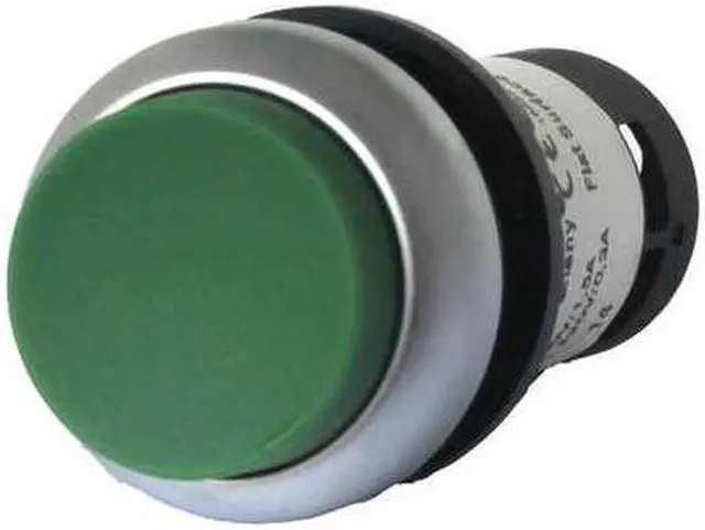 Non-Illuminated Push Button, 22 mm, Maintained (Field Convertible) Action, Extended Button Type of Operator, Head Material Plastic, Contact Form 1NO, Bezel Silver Nylon, Color Green, Contact Rating 1.5A @ 230V AC, 3A @ 24V DC, NEMA Contact Rating Designation AC-15, DC-13, Number of Operators 1, NEMA Rating 1, 12, 13, 3, 4X, IP Rating 67, 69K, Legend No Legend, Standards CCC, CE, CSA, IEC 60947, Lloyd's Register, RoHS, UL, VDE 0660, Terminal Connection Pressure Plate, Material Plastic.