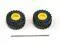 This is a set of two durable semipneumatic OffRoad Tires with wheels that work well in a variety of applications. The thick tread is good for offroad conditions. No screws are necessary just push them onto a shaft.