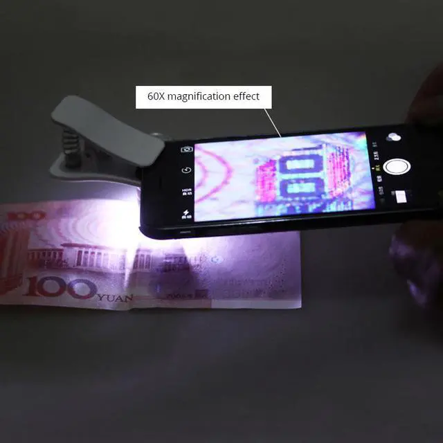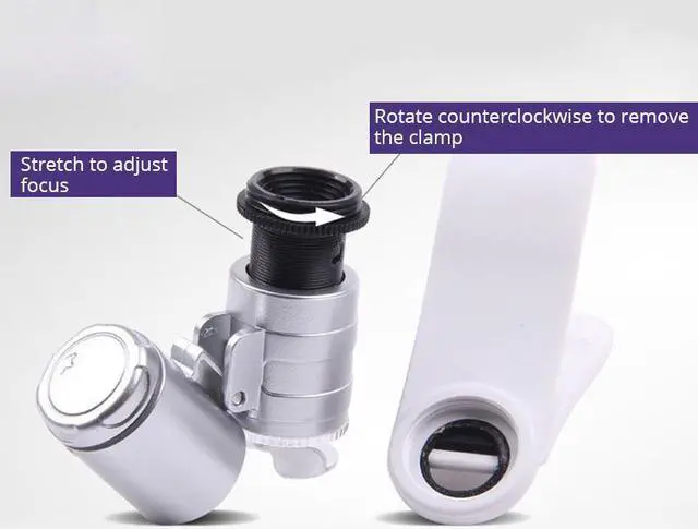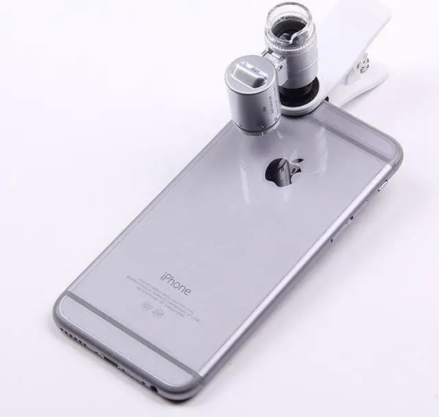 Rapide et facile à fixer à la caméra de votre téléphone avec le Clip détachable. Associé à un couvercle de Microscope spécial pour téléphones mobiles, il peut simplement se connecter à l'objectif de la caméra de votre téléphone portable;