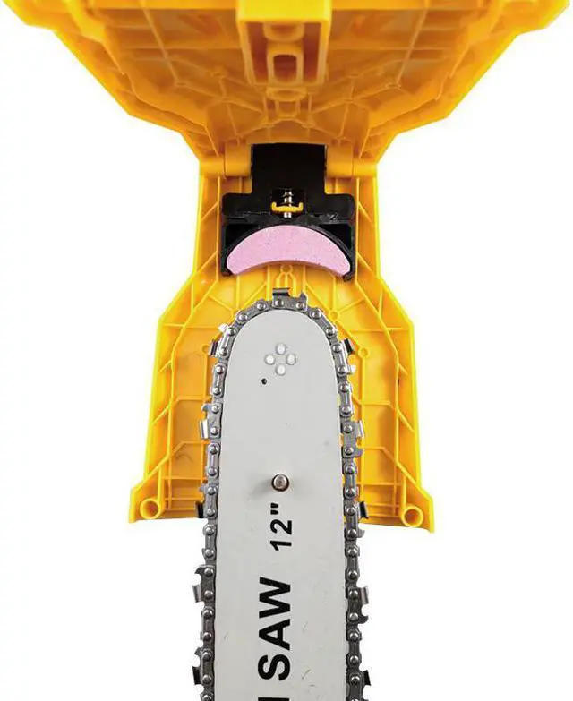 L'outil d'affûtage de la scie à chaîne est installé dans l'affûteur et peut être installé et utilisé à tout moment afin que votre chaîne puisse être affûtée en peu de temps. Gardez l'huile sur la chaîne et les rails pour réduire la friction et prolonger la durée de vie.