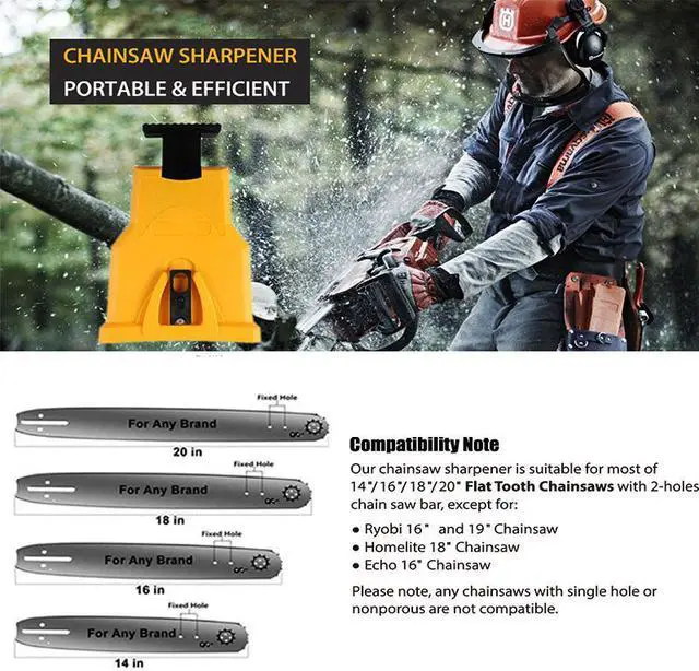 Afin de s'adapter à différents types de chaînes de trous différents, l'affûteur de scie à chaîne est conçu avec 2 trous pour un affûtage fixe, un trou fixe et l'autre se déplaçant d'avant en arrière, très flexible. Vérifiez à l'avance si votre lame de tronçonneuse a deux trous. Si votre lame de scie est un seul trou, donc ne convient pas.