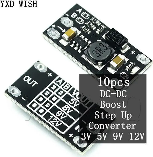 Module de tension électronique, 10 pièces, DC-DC modules d'alimentation, DC 5V/8V/9V/12V, 1,5 a, indicateur LED, panneau élévateur, bricolage