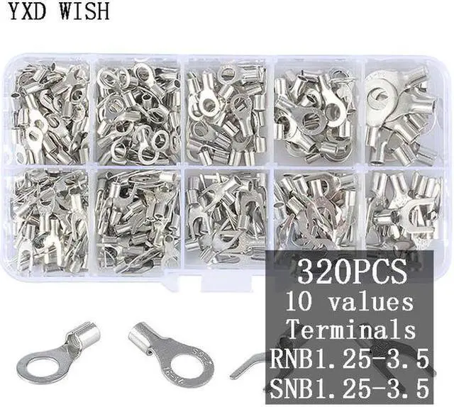Kit d'assortiment de bornes 10 en 1, 320 pièces, fourche à anneau Non isolée, type U en laiton, connecteur de fil de câble, broche à sertir, Kit de bricolage
