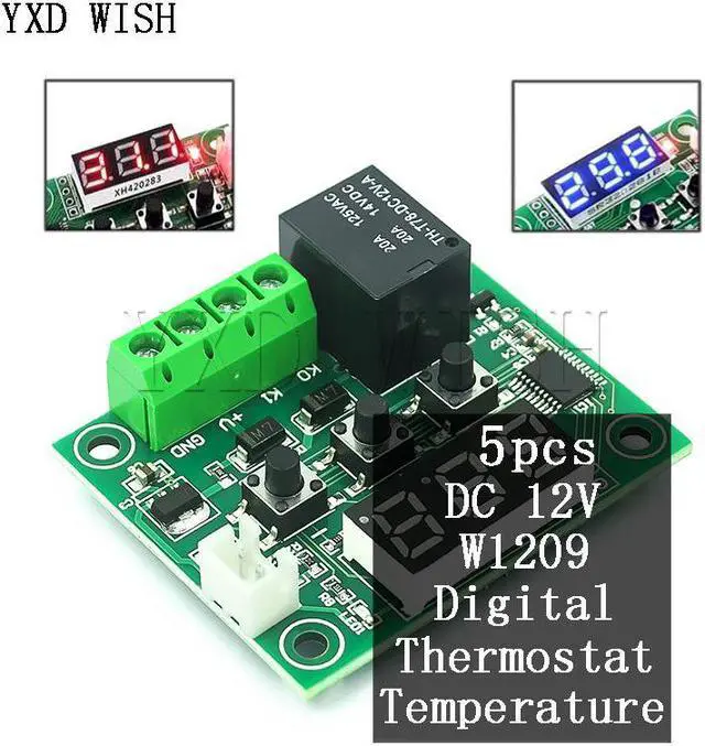 Thermostat numérique de contrôle de température W1209 DC 12V, plaque de commutation-50-100C W1209 5 pièces