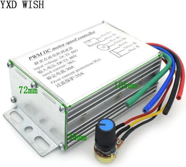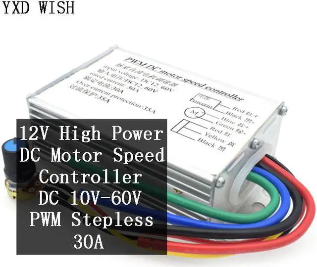 Contrôleur de vitesse de moteur cc 10V-60V PWM commutateur de contrôle de vitesse en continu 4V 36V 48V 60V contrôleur de vitesse de moteur haute puissance 30A
