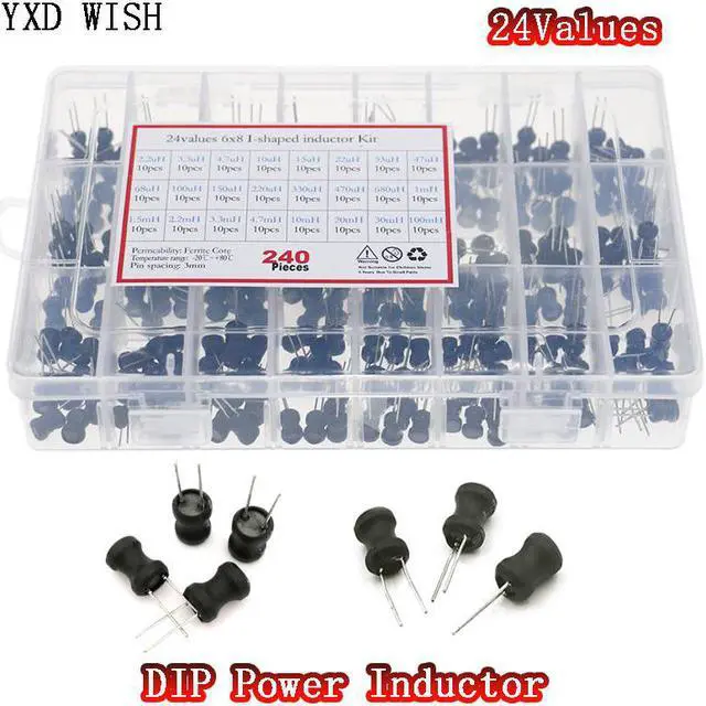 Inducteur de puissance DIP 6*8mm 4. 7uh 10/22uH 100/150uh 220/330uH 470uH 1MH 2. 2mh 4. 7mh 10mh ensemble d'inductance 240 pièces