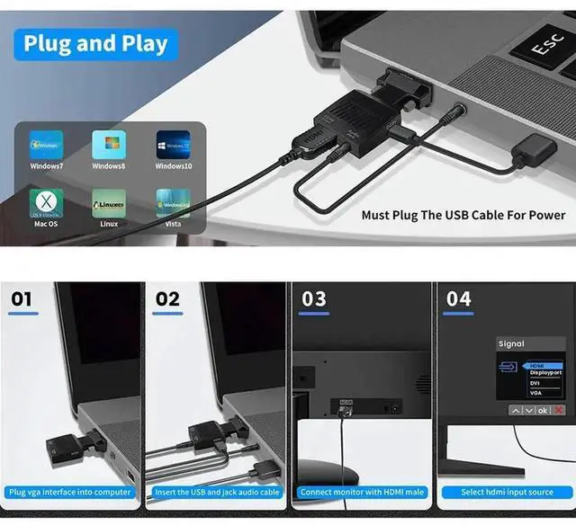 1080P HD VGA To HDMI-compatible Adapter With 3.5 mm Audio Cable To HDTV Projector Video Audio Converter For PC Laptop Monitor