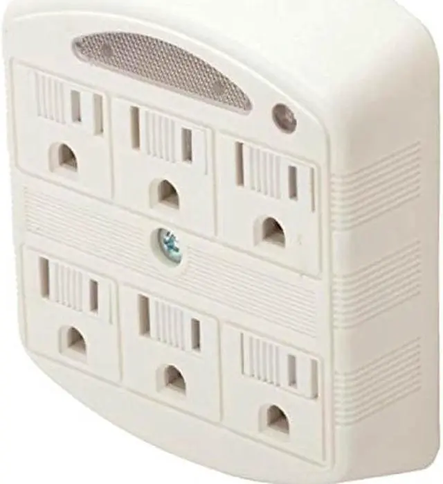 TS-16 - WALL TAP 6-OUTLET 15A 125V 1875W WITH AUTOMATIC NIGHT LIGHT