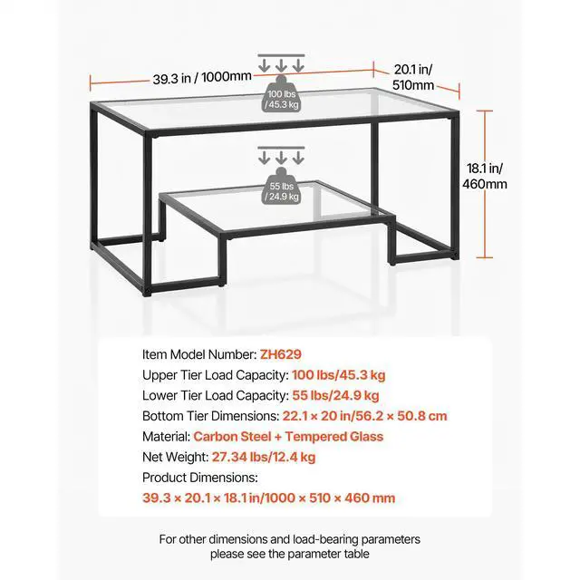 Upper Tier Load Capacity: 100 lbs/ 45.3 kg
